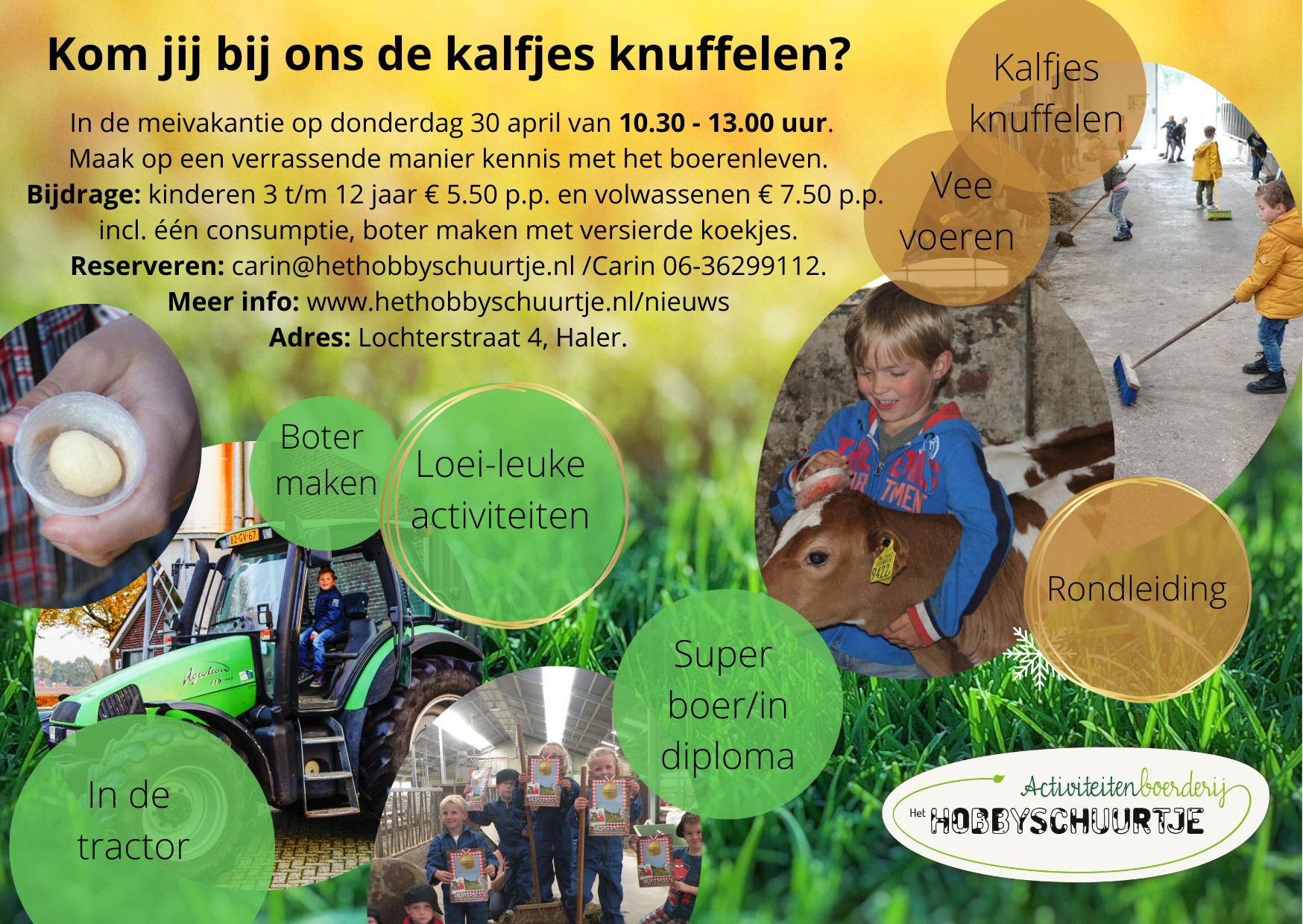 Reserveren:of bel of app Carin Rietjens: 06-36299112 of mail: met carin@hethobbyschuurtje.nl Meer info: >> boerderijbezoek <<